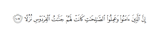 “Sesungguhnya orang-orang yang beriman dan beramal soleh, bagi mereka syurga Firdaus sebagai tempat tinggal, mereka kekal di dalamnya.”